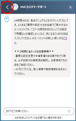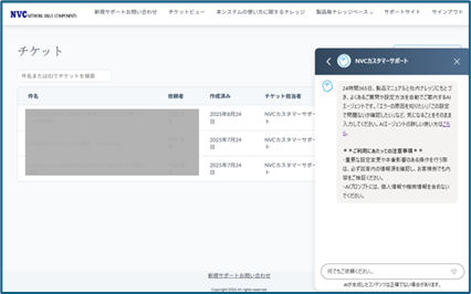 カスタマーポータルを起動すると、図1の画面が表示されます。AIエージェントのウィジェットを閉じる(×アイコンをクリック)と、図2の画面表示になります。