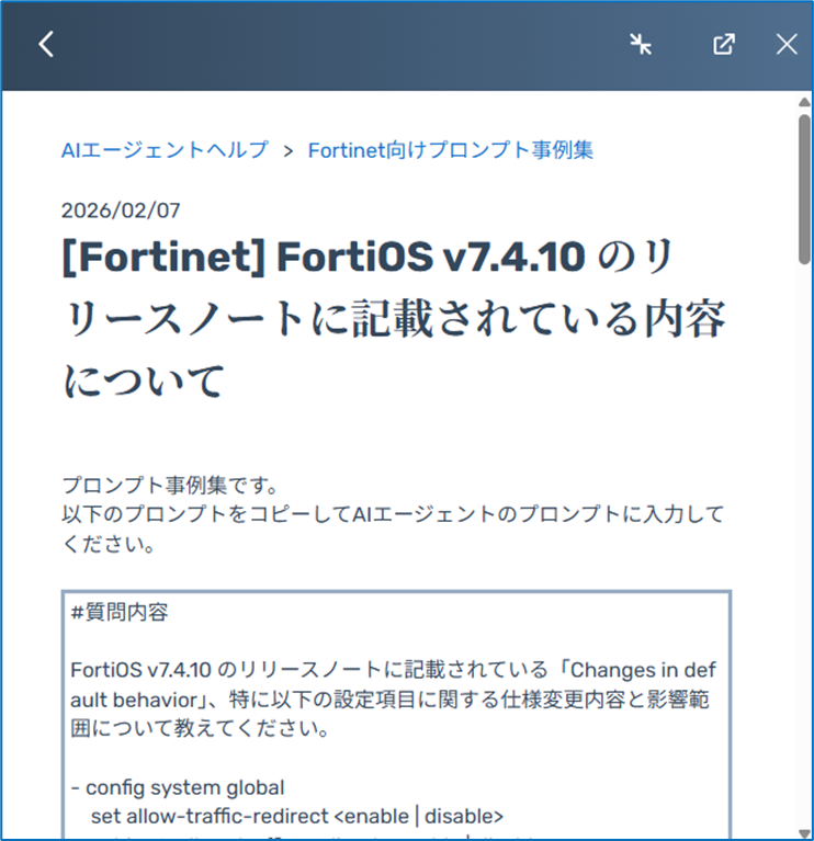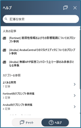 ヘルプ記事を選択lするとウェジット内でプロンプト事例をご覧になることが出来ます。